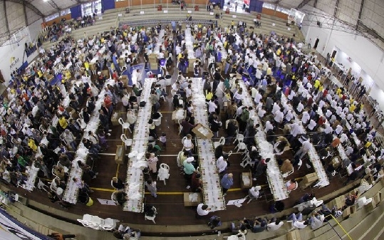 Mais de mil voluntários se reuniram neste sábado, no ginásio da Arcam, para produzir 40 mil fraldas para a Casa das Fraldas. Tudo pra marcar os 40 anos da Arcam. Depois de cerca de quatro horas, chegou-se a 41 mil unidades produzidas. Olha aí, então nem precisa fazer nada para marcar os 41 anos em 2015...