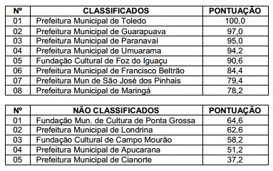 No edital divulgado sexta-feira, Campo Mourão foi desclassificado por não atingir a nota mínima.