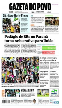 Manchete da "Gazeta do Povo" desta segunda-feira diz que o governo federal levou vantagem com o pedágio nas estradas do Paraná.