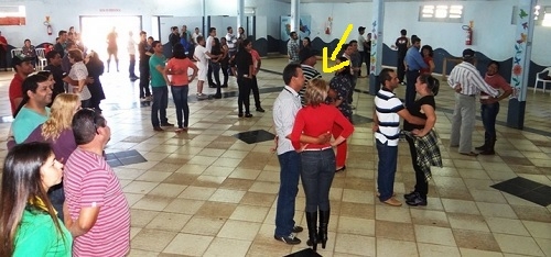 A Divisão de Ação Social da prefeitura de Farol iniciou o curso de dança tradicional gaúcha. As aulas são ministradas pelo Grupo Marcos do Sul, que ensinará oito ritmos (xote, valsa, chamamé, milonga, rancheira e marchinha). As inscrições ainda abertas e são gratuitas. As aulas são aos domingos (15h) no Centro de Eventos. No primeiro dia 30 casais participaram. E tá vendo aquele ali, com a mulher de blusa vermelha? É a prefeita Ângela Kraus...