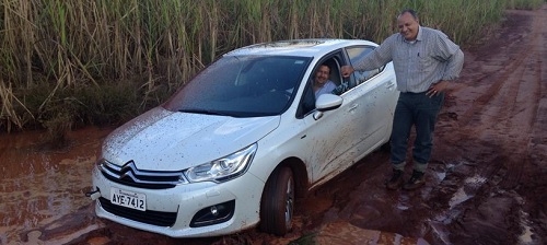 Pensa que vida de prefeito é fácil, é? O prefeito Carlos Caxão, de Corumbataí do Sul, é quem está ao volante do carrão acima. Detalhe: está encalhado numa estrada rural de Iguaracu. Quem aparece do lado de fora é o gerente do Parque Estadual Lago Azul, de Campo Mourão, Rubens Lei Pereira. Óh vida, encalha o carro e ainda vai parar na internet...