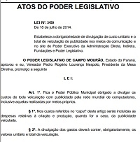 Foi publicado nesta sexta-feira a lei que obriga a prefeitura a divulgar o valor das propagandas que faz.