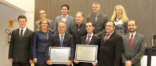 Teve sessão solene da Câmara de Campo Mourão nesta sexta-feira para a entrega de mais duas homenagens, a comenda 10 de Outubro para o Supermercado Carreira e o título de Cidadão Honorário para um dos sócios fundadores da empresa, Armindo Marques Carreira. O mercado completou 50 anos. O vereador Eraldo Teodoro, autor das homenagens, e a prefeita Regina Dubay entregaram as honrarias. Apenas seis dos 13 vereadores foram à sessão. Hummmm...