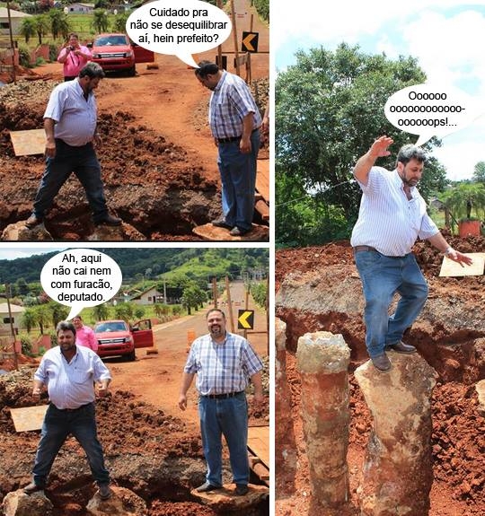 Os cliques são do fim de semana, em Nova Cantu. O prefeito Airton Agnolin aproveitou que o deputado Artagão Jr estava por lá para a Expo-Cantu e o levou para ver as obras da ponte sobre o rio Tonete, na saída para Campina da Lagoa. Agnolin não só mostrou a ponte, como deu como uma demonstração de coragem e equilírio. Ah, tá pensando o quê!...