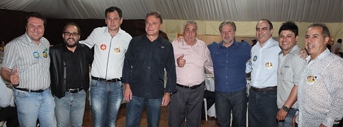 O senador não discursou nem nada, mas vários prefeitos foram ao evento da Comcam usando adesivos de candidatos.