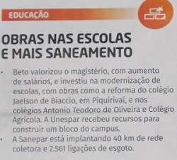 Panfleto da campanha de Beto Richa (PSDB) diz que a Unespar recebeu recursos para construir um bloco no câmpus.