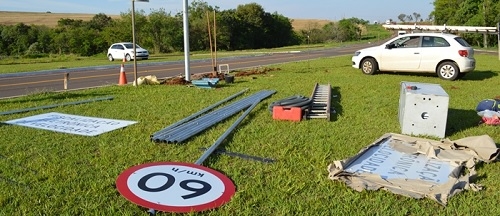 Placas indicam que a velocidade máxima no trecho da BR-272 será de 60 km/h.