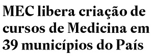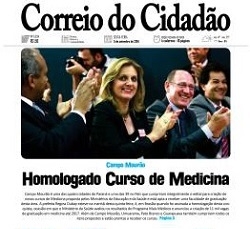 A confirmação das 39 cidades que ganharão curso de medicina foi destaque nesta quinta-feira nos principais meios de comunicação do País. Acima estão as manchetes da Gazeta do Povo, do O Estado de S. Paulo, do UOL e do G1. Isso só na internet. Campo Mourão é um dos 39 municípios escolhidos. E que fique claro: Paranavaí não está na lista...