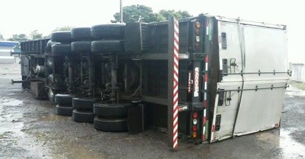Acredite se quiser, mas esses dois caminhões aí tombaram com a força do vento. Foi nesta seta-feira à tarde, na BR-369, perto de Juranda. O primeiro estava parado às margens da rodovia, quando veio a rajada de vento. O segundo (apenas a carreta) estava num posto de combustíveis, quando tombou. Ninguém se feriu. E a gente pensando que isso só acontecia em filme...
