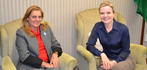 A visita da prefeita Regina Dubay nesta terça-feira foi bem longe: em Brasília, onde esteve com a senadora Gleisi Hoffmann. Regina também passou por vários ministérios, onde tratou sobre Santa Casa, UPA 24h, acesso à UTFPR na BR-369, contorno norte e casas populares. Também levou o convite para a Esquadrilha da Fumaça voltar à cidade na Festa do Carneiro do Buraco do ano que vem. Ah, digamos que foi a "visitaço do dia"...