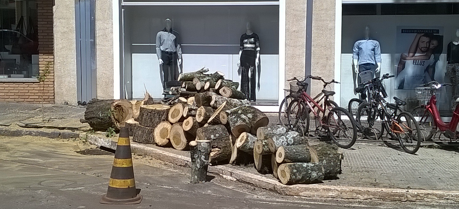 Se fosse o saudoso narrador esportivo, a legenda seria essa: “Tá lá mais uma árvore espedaçada no chão”. O massacre da serra elétrica passou nesta segunda-feira pela rua Harrison José Borges, esquina com a av. Manoel Mendes de Camargo. Será que precisava? A prefeitura diz que só autoriza corte de árvore se tiver laudo técnico nesse sentido. Hummmm...