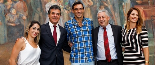 Em tempo: A foto mostra a ginasta Daniele Hipólyto e o jogador de vôlei Giba, que foram prestigiar a posse de secretário mourãoense.