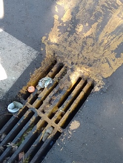 "Bueiros na esquina do INSS em estado deplorável. Um entupido e outro que foi obrigado a engolir tinta de asfalto. Solicitei providências". Profª Vilma (vereadora)