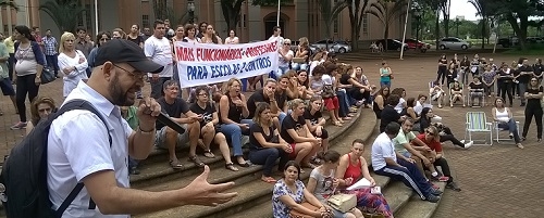 Esses foram alguns temos usados na manhã desta terça-feira no protesto dos professores na praça São José, em Campo Mourão.