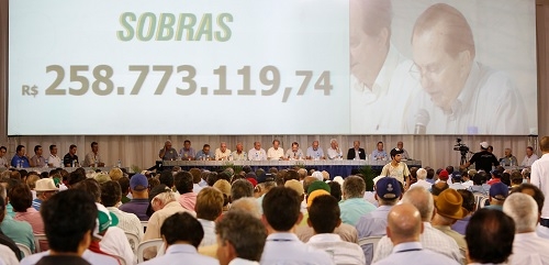 As sobras aos cooperados ficaram em R$ 258,7 milhões (R$ 72,6 milhões já tinham sido antecipados em dezembro).