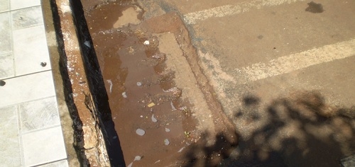 "Av. Capitão Índio Bandeira, esquina com rua Mato Grosso. Este é um dos bueiros entupidos no centro de nossa Campo Mourão. Quando chove, as pessoas têm que cruzar rios de águas pluviais. Nossa cidade precisa de zelo". Fraterno Maria Nunes