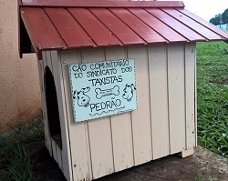 "Pedrão" é o nome de um simpático vira-latas que vive na rodoviária de Campo Mourão. Ele tinha sido levado pela carrocinha, mas voltou "ao lar" a pedido de taxistas e com uma mãozinha de voluntárias da causa animal (entre elas a vereadora Elvira Schen). Pedrão voltou vacinado e de casinha nova, com placa de identificação e tudo. Ele é o "cão comunitário" do Sindicato dos Taxistas.