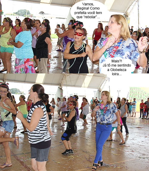 Os cliques são do sábado, quando a prefeita Regina Dubay foi conferir de perto os bailes de carnaval promovidos pela prefeitura. Teve no Lar Paraná (Abrace) e na asa leste (Centro da Juventude). Foi só conferir, não. Regina não resistiu e caiu no samba. Ah, pensa que é fácil essa vida de Globeleza, ops, prefeita, é?...
