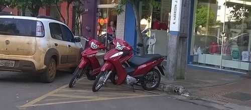 "Apesar do centro de Campo Mourão já ter vagas demarcadas para motos, muitos motociclistas ainda usam espaços irregulares para deixa suas motos, como esse na rua Harrison José Borges".