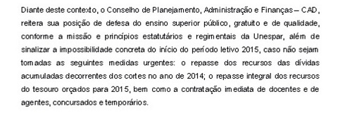 O Conselho de Planejamento, Administração e Finanças da Unespar divulgou "Carta aberta" nesta terça-feira alertado sobre o problema.