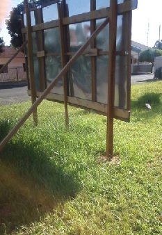 Olha só o que estão fazendo com os canteiros públicos aqui em Araruna. Instalaram três placas enormes de propaganda em um local totalmente público. Essas placas estão poluindo visualmente a cidade há pelos menos um mês e meio.
