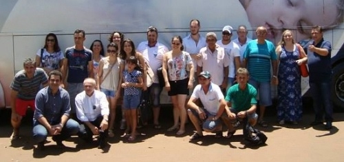 É o prefeito de Nova Cantu, Airton Agnolin, vereadores e secretários preparados para uma viagem a Curitiba.