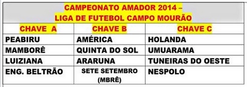 Campo Mourão, novamente, terá três - América, Holanda e Nespolo.