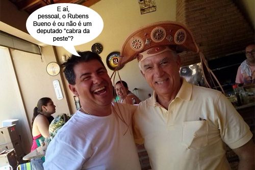 Óxente, mas o que é que é isso? É ele mesmo, o députado féderal Rubens Bueno ao lado do apresentador Ricardo Borges. Bueno usa um chapéu nordestino, bem ao estilo Luiz Gonzaga. Ou Lampião, pros mais radicais. A foto vem do Facebook e foi feita por Fábio Nogaroli, durante uma dessas confraternizações de fim de ano. E cá pra nós: eita balãozinho porreta!...