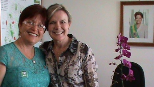 A secretária Sônia Singer (Cultura) esteve durante a semana em Brasília. E não é que ela conseguiu um tempinho na agenda da ministra Gleisi Hoffmann (Casa Civil). Olha as duas aí, "observadas" pela presidenta Dilma Rousseff. Sônia e Gleisi se conhecem há tempos, já que os maridos delas - Carlos Singer e o minsitro Paulo Bernardo (Comunicações) - são companheiros dos tempo do Banco do Brasil e do movimento sindical. Hummmm....