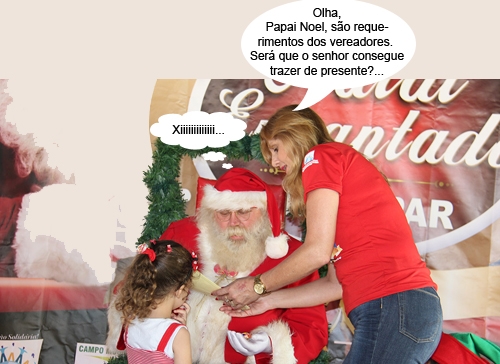 O clic é do Natal do Provopar, realizado na semana passda. A prefeita Regina Dubay participou no segundo dia e, pelo visto, levou uma lista de pedidos ao "bom velhinho". Pela cara dele, não são pedidinhos fáceis de se atender, não...