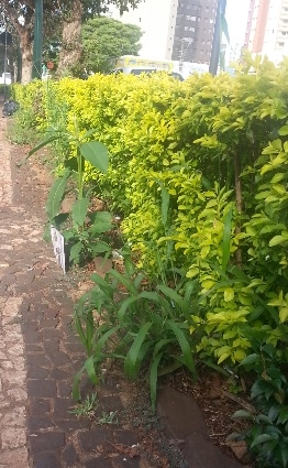 "Foto do canteiro central da av. Irmãos Pereira, cheio de mato, bem no centro de Campo Mourão. Está muito feio e não é feita a manutenção faz muito tempo".