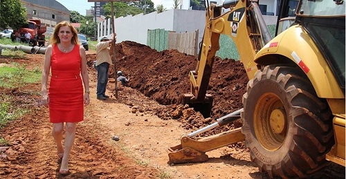 Olha aí a prefeita Regina Dubay "desfilando" pelas obras na cidade. No clic de sexta-feira, ela aparece na rua Sebastião Albino Ferreira, no jardim Flórida, que está recebendo as galeriais pluviais e em seguida será asfaltada. O investimento passa de R$ 300 mil e é bancado com aquela verba da venda das contas salários dos servidores. No mais, repare que a prefeita vai de salto e tudo pro meio do terrão. Tá pensando o quê!...