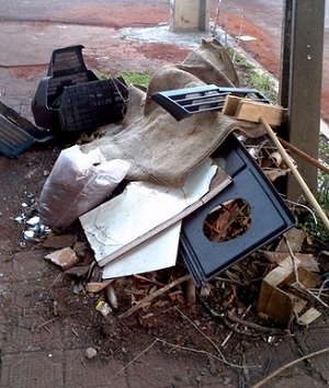 "Lixo na calçada na rua Araruna, entre as avenidas Índio Bandeira e Manoel Mendes Camargo". Edson Battilani, vereador
