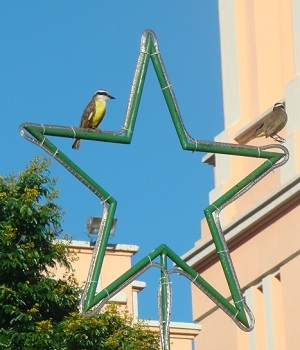 A árvore de Natal colocada na praça Getúlio Vargas ainda não foi retirada. É o único enfeite que resta por lá. O clic foi feito na tarde desta segunda-feira. A retirada está atrasada devido à época do ano, com o pessoal do Obras em férias. Os passarinhos, que usam o local para um descansinho entre um voo e outro, agradecem...