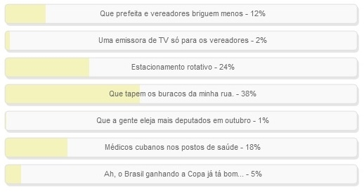 Venceu a alternativa "Que tapem os buracos da minha rua", com 38% dos votos.