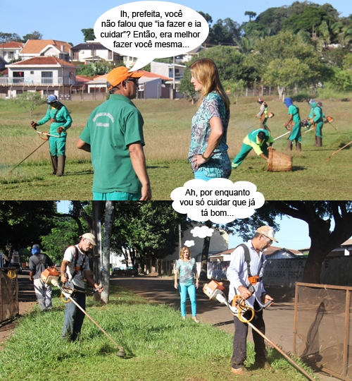 Os cliques são desta quarta-feira, quando a prefeita Regina Dubay foio ver de perto o trabalho de corte de grama no Parque do Lago e em canteiros de avenidas. O corte começou na av. Jorge Walter, já passou pela av. Guilherme de Paula Walter e chegou à av. Comendador Norberto Marcondes.