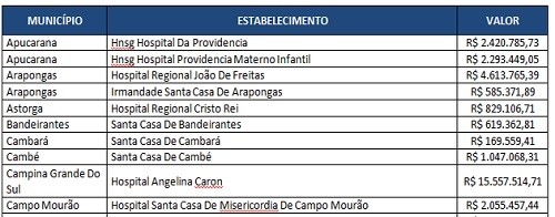 No dia 23 de dezembro, por exemplo, foi divulgado que as santas casas do Paraná teriam R$ 131 milhões.