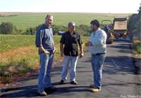 Em Nova Cantu, foi iniciada a pavimentação do trecho entre a PR 239 e o distrito de Santo Reis. O prefeito Airton Agnolin e o vice-prefeito Vanderlei Esser foram lá acompanhar o início dos trabalhos. “É um antigo sonho dos moradores do distrito”, frisou Agnolin. Ao todo serão pavimentados 5 km, mas começa com 1,5 km. Essa primeira etapa é um teste pra ver a durabilidade do asfalto sobre as pedras. Portanto, cruzem os dedos...