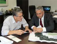 ENQUANTO ISSO, NA VISITA DO GOVERNADOR... O governador Beto Richa adiou a visita a Barbosa Ferraz, mas o prefeito Gilson Cassol não perdeu tempo. Foi a Godoy Moreira e entregou junto com o prefeito local o pedido para que o governo faça uma ponte sobre o rio Corumbataí, no trecho que liga os dois municípios. Hoje a travessia é feita de balsa.