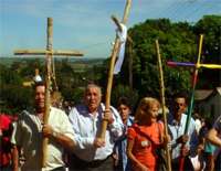 Mais de 500 pessoas participaram domingo de mais uma edição da Rota da Fé. Desta vez a peregrinação foi de Campo Mourão a Janiópolis, passando por Farol. Os prefeitos Lola Poera e Ângela Kraus prestigiaram a passagem da Roda da Fé por seus municípios. Lola participou até de uma homenagem a 13 trabalhadores rurais que morreram num acidente, em 1994. Teve que carregar cruz e tudo. Ô dureza...