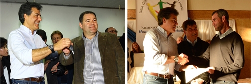 É comum que o governador receba mimos durante suas visitas pelo interior. Em Terra Boa, nesta sexta-feira, Beto Richa não recebeu um, mas dois mimozinhos. Duas camisas, na verdade. Uma esportiva, do time da cidade, e outra social. Ih, será que estão achando por lá que o governador anda mal vestido?...