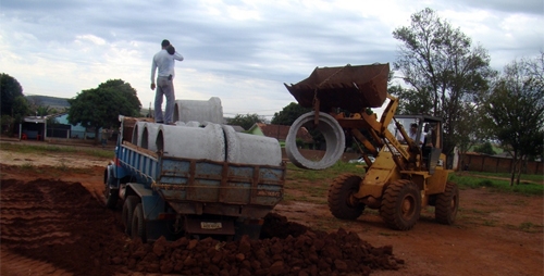 Janiópolis – A prefeitura começou a receber do Instituto das Águas os tubos para ligação da rede galerias nos conjuntos Primavera e Veneza. Segundo o prefeito Lola Poera, são mil tubos pra solucionar um problema de mais de 15 anos. Os conjuntos contam com asfalto, mas as águas das chuvas não têm para onde ir e provocam erosão nas ruas das proximidades sem pavimentação. E viva o Márcio Nunes!...