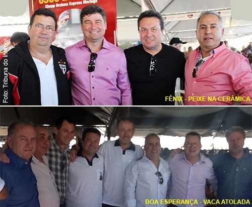 Não faltaram deputados nas duas festas gastronômicas deste domingo na região. Na Vaca Atolada, em Boa Esperança, bateram cartão os federais Rubens Buen e Zeca Dirceu. No Peixe na Cerâmica, em Fênix, a presença foi dos estaduais Marla Tureck e Wilson Quinteiro. Sabe como é que é, os parlamentarem têm que ir pras bases, nem que engordem um pouquinho. Nada que não se perca durante a próxima campanha...
