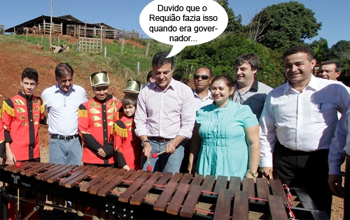 O clic é de sexta-feira, quando o governador Beto Richa passou por Luiziana dentro daquele tour por 11 cidades da região. A passagem pela cidade incluiu a apresentação da Fanfarra Municipal, um dos orgulhos de Luiziana. Richa foi lá e também mostrou seus dotes musicais. Viu, nem só de cutucões ao antecessor vive o homem...