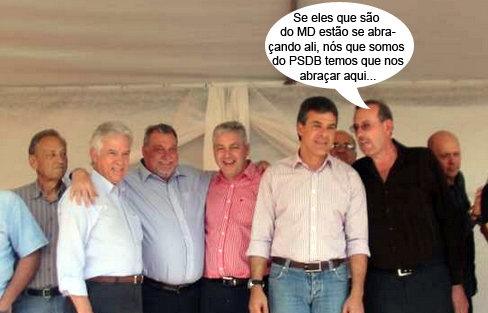 Repare que o deputado Douglas Fabrício e o presidente Márcio Nunes (Ipáguas) aparecem abraçados.