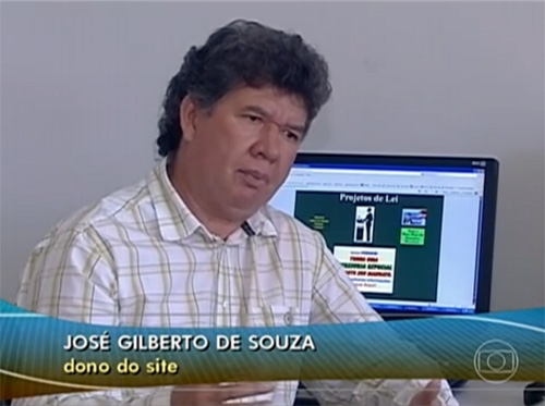 O secretário especial Gilberto de Souza (Assuntos de Governo) apareceu em rede nacional nesta sexta-feira, dando entrevista para o “Jornal Hoje” (Globo). O motivo é o mesmo que já lhe rendeu holofotes outras vezes: o site mantido por ele que vende projetos de leis para vereadores de todo o País. Pra quem ficou curioso, é só clicar aí: www.projetosdelei.com.br. E bons negócios. Ops! Bons projetos...