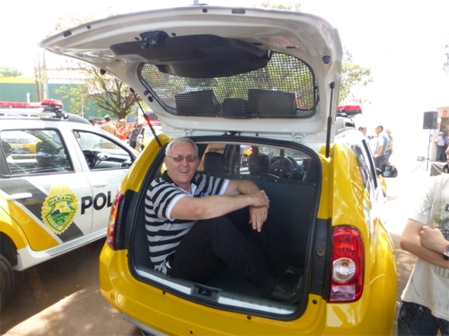 Calma, o reverendo Richard Dickerson não foi preso. A foto foi só uma brincadeira que ele fez durante uma dessas solenidades de entrega de viaturas em Campo Mourão. Em todo caso, depois que foi chamado pra fazer uma oração ao lado do governador Beto Richa e pediu que Deus abençoasse a ministra Gleisi Hoffmann, hummmm, foi por pouco que essa voz de prisão não saiu. Prisão por provocação!...