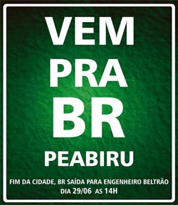 Só que lá não é “vem pra rua”, mas “vem pra BR”, já que o protesto deve acontecer na rodovia que corta a cidade.