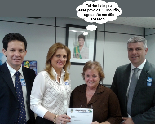 O clic é de Brasília, onde a prefeita Regina Dubay se reuniu nesta terça-feira com a coordenadora geral de Lei de Incentivo ao Esporte, do Ministério do Esporte, Ivone Cogo. Foi para solicitar agilidade na liberação de recursos para o Projeto do Basquete Cidadão, de Campo Mourão. Os vereadores Toninho Machado e Edilson Martins acompanharam a prefeita.