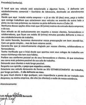O vereador Luiz Alfredo não gostou de ver carros de seu novo vizinho (leia-se TV Carajás) estacionados por longos períodos em frente ao seu escritório de advocacia. Mandou uma notificação. “Estacione seu veículo doravante de frente ao seu estabelecimento de trabalho, por longo período... E não defronte ao meu”, escreveu num dos trechos do ofício. Ai-aiai-aiai! Se a moda pega...